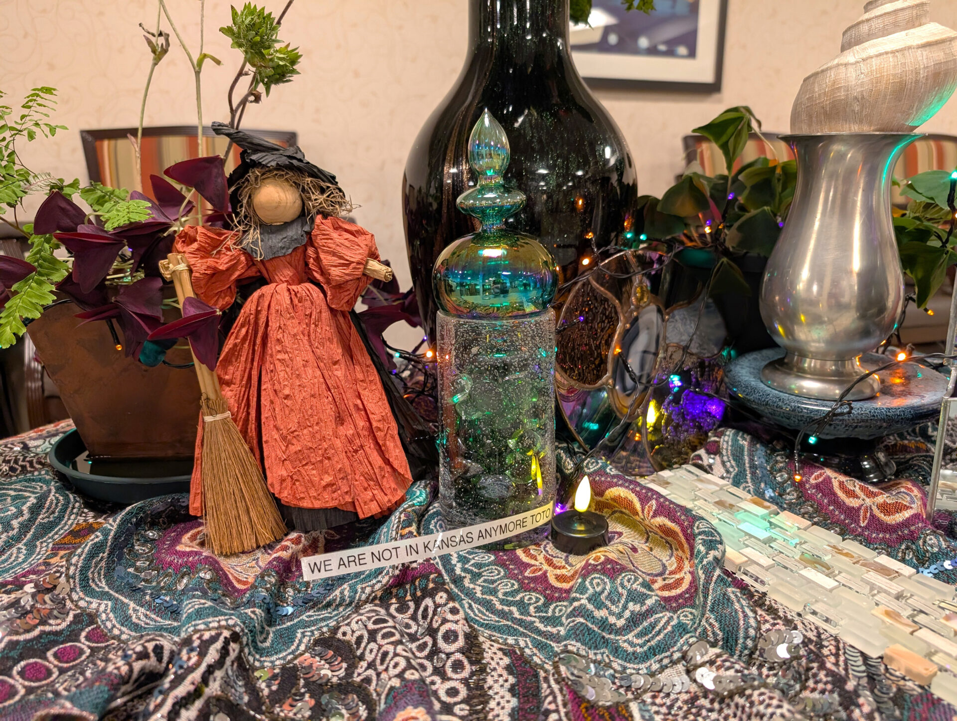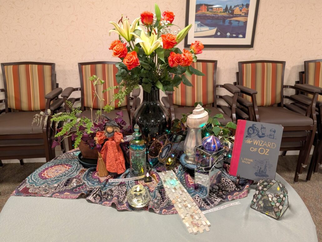She chose The Wizard of Oz because it is one of her favorite books, and she felt the fantasy of the story gave her many possibilities. Her particular copy of the classic tale is one she inherited from her mother, which added a special element to her display.