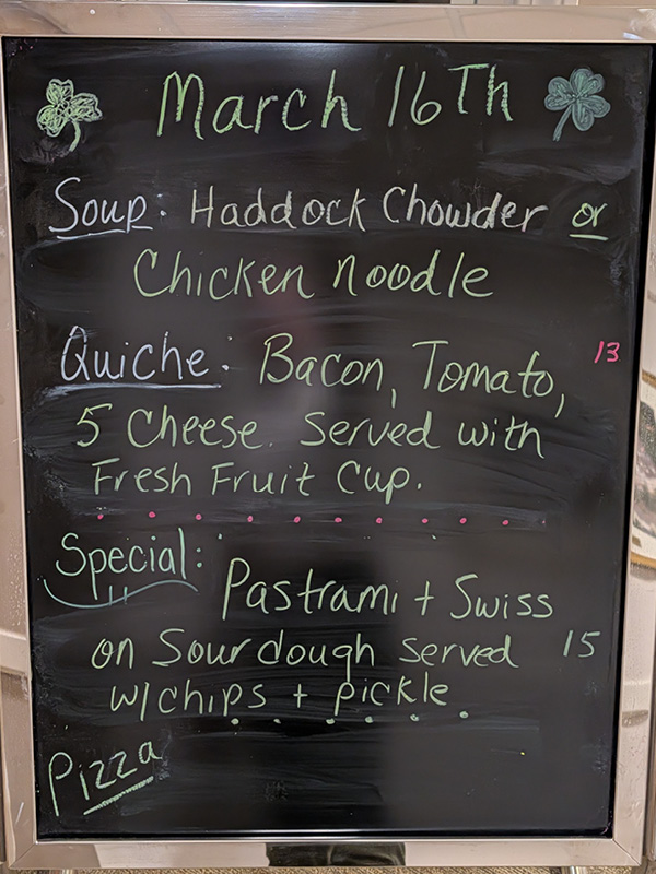 - The Gazebo Grille Blackboard Specials 3-16-26